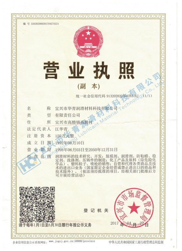 于1992年創(chuàng)立于宜興,2007年公司更名為宜興市華青潤滑材料科技有限公司,是一家集研發(fā)、生產、銷售于一體的專業性金屬加工耗材企業。專業生產被覆劑,壓鑄脫模劑,壓鑄脫模劑廠家,鍛造脫模劑,金屬切削液,鋁合金切削液等壓鑄耗材、金屬加工耗材,產品廣泛應用于加工中心、壓鑄、鍛造等領域。
